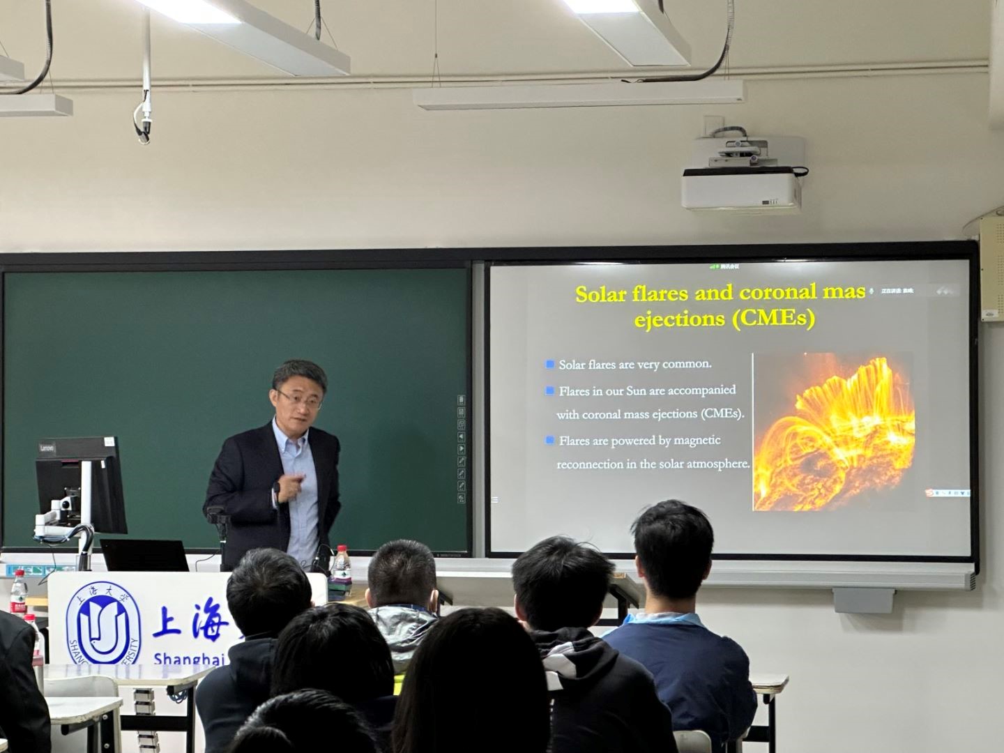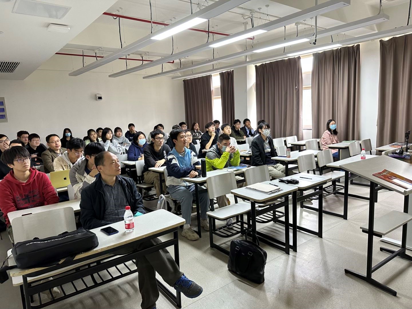 整场报告深入浅出,内容丰富精彩。报告完成后,现场及线上听众踊跃提问,提出了诸多黑洞物理研究的相关问题,如黑洞周围磁场的分布情况,磁重联的磁场线闭合与弯曲问题,以及吸积盘的物质构成以及密度分布等。袁峰研究员为同学们一一耐心解答,并对同学们的提问给予了高度评价。