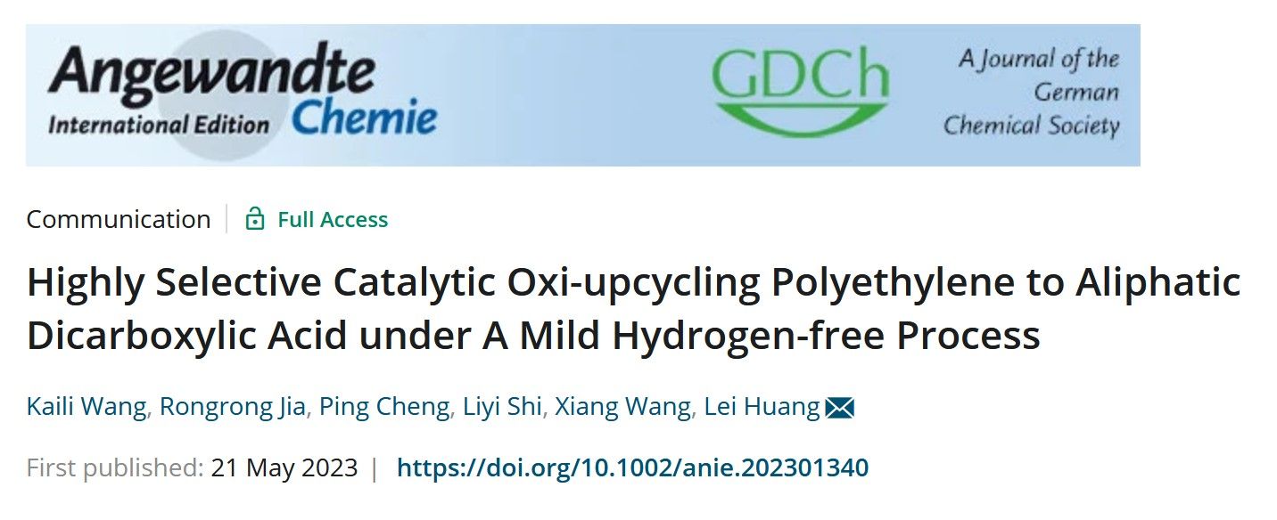 近日,纳米中心黄垒副研究员、施利毅教授和大连理工大学王翔教授合作,在聚乙烯(PE)塑料的升级回收领域取得重要进展,相关研究成果以“Highly Selective Catalytic Oxi-upcycling Polyethylene to Aliphatic Dicarboxylic Acid under A Mild Hydrogen-free Process”为题发表在化学顶级学术期刊《德国应用化学》(Angewandte Chemie International Edition,JCR和中科院一区Top)上。英国365公司为第一完成单位。
