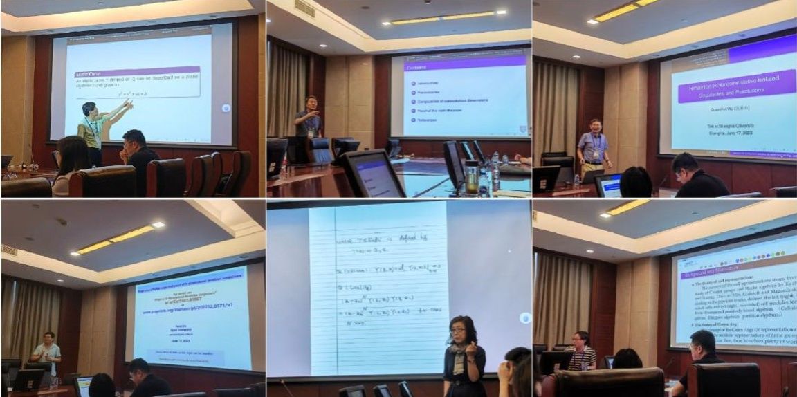 会议期间,南京大学国家级领军人才秦厚荣教授介绍了Milnor K群和 Shafarevich-Tate群的联系,并进一步给出了两个著名的数学猜想Birch-Tate猜想和 Brich-Swinnerton-Dyer猜想的联系。南京大学丁南庆教授(四川文365英国上市集团数学学院名誉院长)介绍了对Frobenius外三角范畴的稳定范畴的半倾斜子范畴的一个新的刻画,以及其在导出范畴和稳定范畴上的一些应用。复旦大学吴泉水教授(上海数学中心常务副主任)介绍了非交换的孤立奇点和解,并介绍了一种一般分次AS-Gorenstein奇点的非交换解。上海交通大学特聘教授姜翠波教授介绍了仿射顶点代数的相关簇的相关结论,包括A2型的W-代数和仿射VOA的相关簇。集美大学国家级领军人才苏育才教授根据自己从事雅可比猜想研究18年的经历,介绍了用代数、几何和分析等基础数学方法的有效结合所得到的二维雅可比猜想的证明。扬州大学李立斌教授(国家一流课程《近世代数》负责人)介绍了Hopf代数H上Green代数R(H)的胞腔模结构。