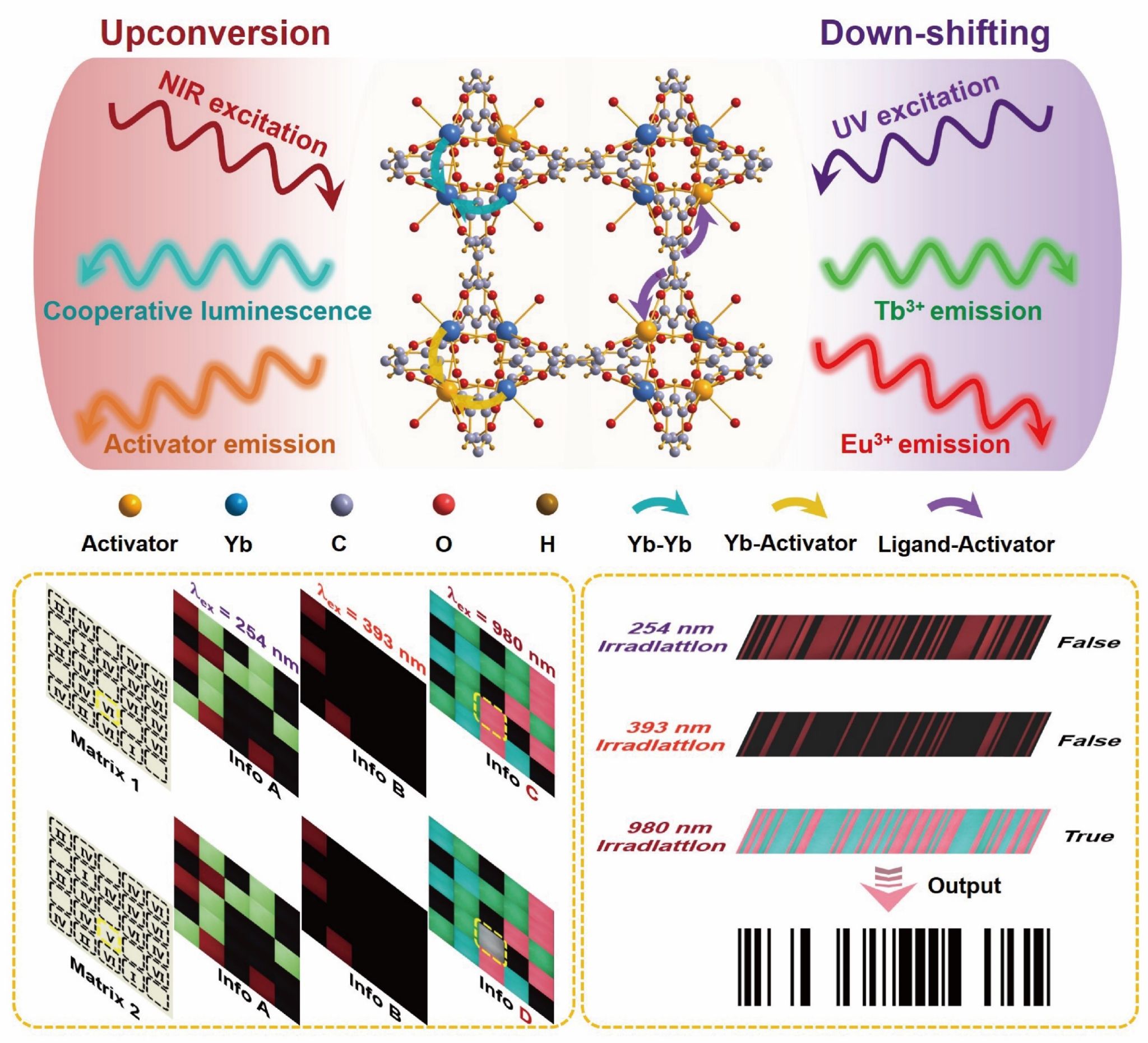 随着数字信息的快速增长,海量数字信息的存储和加密成为了严峻的挑战。光致发光材料由于其相对较短的响应时间和可变的激发模式,被广泛用于数据记录、存储和信息安全技术中。目前,大多数光致发光材料只响应一种激发光,在这种情况下,单一的发光模式很容易被破译。然而,一些特殊的光致发光材料能够响应多种激发波长,使用这种多模光致发光材料进行信息存储和加密是一种切实可行的策略。