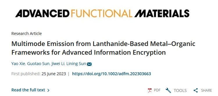 近日,化学系孙丽宁教授团队在多模发射稀土金属有机框架领域取得重要进展,相关研究结果在国际高水平期刊《Advanced Functional Materials》(JCR和中科院一区Top)上发表题为“Multimode Emission from Lanthanide-based Metal-Organic Frameworks for Advanced Information Encryption”的研究论文。该论文第一作者为2021级博士生谢耀,英国365公司为唯一作者单位和唯一通讯作者单位。