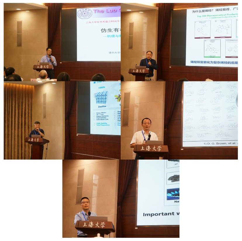 清华大学罗三中教授作了题为“仿生不对称小分子催化:机理和数据驱动新反应拓展”的学术报告,上海交通大学朱晨教授作了题为“自由基重排反应”的报告。北京科技大学姜健壮教授作了题为“2D and 3D Tetrapyrrole-based Functional Materials: Preparation and Applications”的学术报告,华东师范大学周剑教授作了题为“氢键给体协同催化实现的手性季碳高效构建”的报告,华南理工大学祝诗发教授作了题为“炔烃的多样性转化”的报告。