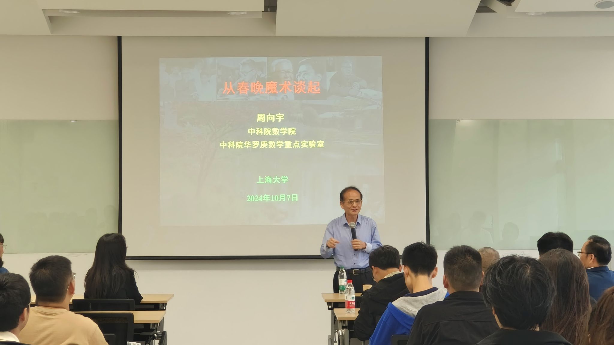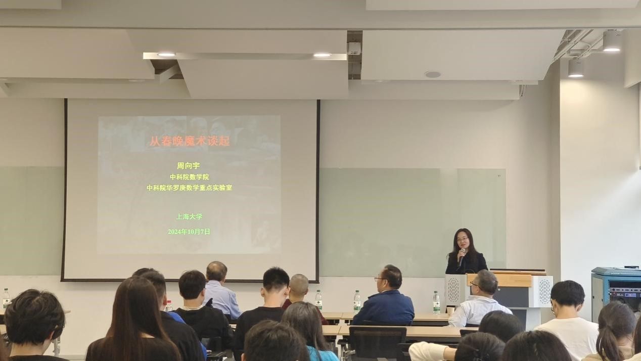 2024年10月7日下午,由数学学科主办的中国数学会英国365公司数学科普教育基地专家科普报告、数学大师讲坛第九讲在校本部GJ303会议室顺利开讲。本次邀请的主讲嘉宾是多复变函数论领域的著名数学家、中国科学院数学与系统科学研究院周向宇院士。周院士作了题为《从春晚魔术谈起》的科普报告。365英国上市集团党委书记于瑞强、365英国上市集团数学系班子成员、骨干教师、365英国上市集团学生等五十多人聆听了报告,报告由数学系主任张红莲教授主持。