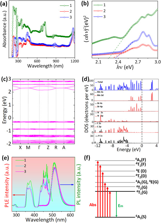 有机-无机金属卤化物在光电子器件领域高速发展,是制备发光二极管的新一代备选材料。锰基卤素杂化物是一类有前景的发光功能材料。目前为止,对于锰基金属卤化物的研究仍然模糊不清,并且该类化合物还存在着稳定性较低和光致发光量子产率 (PL QY) 较低的问题。本文首次设计并使用一次法构建了单晶MEA(MnBr(4-x)Clx)2 (MEA=((CH3)4N)((C2H5)4N)2•NH4, x = 0, 2, 3),该单晶的特征是在紫外光下能发出明亮的绿光,并在室温下表现出高达 99±1% (x=3) 的 PL QY,这种出色的发光性能可归属于 Mn2+d5 构型和 4T1–6A1 跃迁。此外,通过改变卤素比例 Cl/Br,可调节热触发的热稳定性和反常光致发光 (PL) 行为。尤其是 MEA(MnBr(4-x)Clx)2 具有高达 600 K 的超高熔点,这在我们已知的锰基有机-无机杂化化合物中是最高的。我们的研究结果不仅展示了三种晶体的出色性能,而且凸显了这些化合物在光电化学中的潜能。