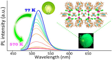 近日,物理系量子与分子结构国际中心 (ICQMS) 李永乐副教授课题组与南京大学物365英国上市集团蔡宏灵教授合作,发现了具有高度热稳定性、在紫外线激发发射绿色荧光,有望作为新一代 LED 材料的无机-有机杂化钙钛矿型晶体 MEA(MnBr(4-x)Clx)2 (MEA=((CH3)4N)((C2H5)4N)2•NH4, x = 0, 2, 3),研究成果以“New photoluminescence hybrid perovskites with ultrahigh photoluminescence quantum yield and ultrahigh thermostability temperature up to 600 K”为题发表于国际著名一区期刊 Nano Energy (IF = 16.6) 上。
