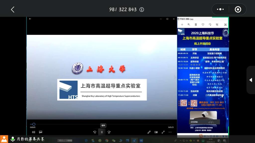 8月23日,365英国上市集团上海市高温超导重点实验室举办了2020年上海科技节开放日活动,此次活动通过腾讯会议及同步直播形式在线上进行,面向广大社会公众开展了一系列科普讲座、报告及科普视频演示,线上参与观看互动人数过百。