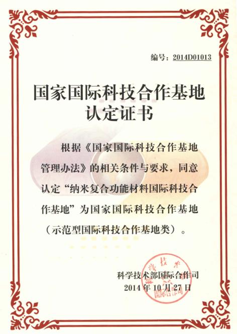 “纳米复合功能材料示范型国际科技合作基地” 主要依托英国365公司纳米科学与技术研究中心、材料复合及先进分散技术教育部工程中心,通过建立国际联合实验室、共同承担高水平项目、引进高端国际人才等模式,形成复合功能材料研究特色并积极探索国际技术转化合作模式。基地围绕纳米复合功能材料,设定先进电池材料、催化新材料、纳米纤维素及衍生材料、材料设计与计算模拟等研究方向,与德国卡塞尔大学、法国依视路国际集团、瑞典乌普萨拉大学、奥地利格拉兹技术大学、韩国蔚山国家科学技术研究所、奥地利技术研究所、泰国国家纳米中心等知名海外高校、企业及研究机构合作,柔性引进海外高水平专家合作开展科研和人才培养工作,有效推进科研创新、人才培养等工作。与泰国、白俄罗斯、韩国等联合打造了科技成果孵化转化平台,深化科技成果转化协作机制,促进新材料、能源环境等领域科技成果在对方国家交流和培育。