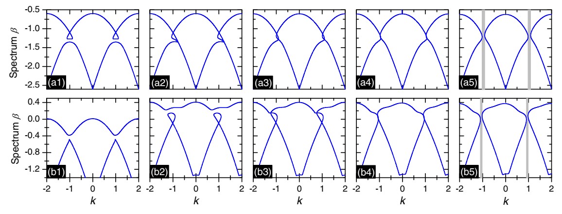 图示不同参数下非线性布洛赫能谱, 存在倾斜的“圈结构”。