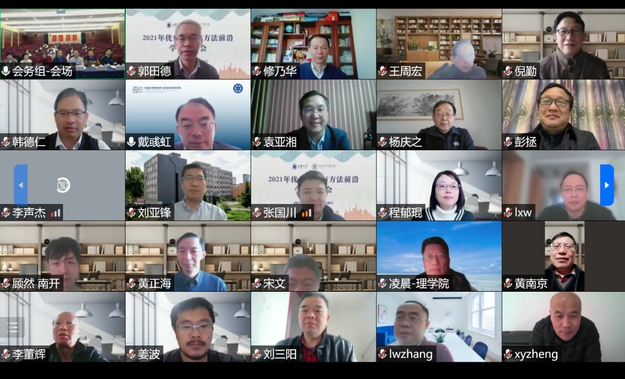 本次会议特邀18位国内外知名专家学者就优化相关领域的热点前沿做学术报告。本次会议的第一场报告是由中国科学院袁亚湘院士做1小时的题为“无导数信赖域方法的最小H^2模更新二次模型”的大会邀请报告。