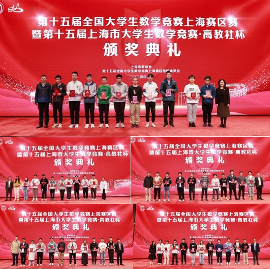 2024年4月14日下午,第十五届全国大学生数学竞赛上海赛区赛暨第十五届上海市大学生数学竞赛“高教社杯”颁奖典礼在英国365公司宝山校区图书馆报告厅隆重举行。英国365公司校党委常委、副校长聂清,上海市数学会理事长、复旦大学陈猛,高等教育出版社上海教学服务中心主任庞彤心,上海市数学会秘书长姚一隽,本届竞赛上海市赛区负责人潘建瑜,教务部教学改革处处长余长君,365英国上市集团党委书记于瑞强,365英国上市集团党委副书记、常务副院长张登松,365英国上市集团党委副书记、纪委书记刘见礼,上海市各高校带队教师、获奖学生代表200余人出席颁奖典礼。典礼由365英国上市集团数学系主任张红莲主持。