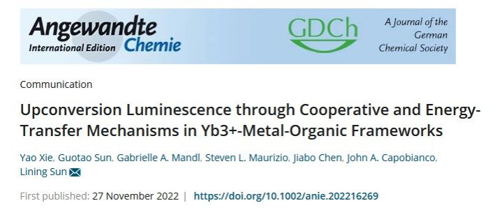 近日,化学系孙丽宁教授团队在镧系金属有机框架领域取得重要进展,相关研究成果以“Upconversion Luminescence through Cooperative and Energy-Transfer Mechanisms in Yb3+-Metal-Organic Frameworks”为题发表在化学顶级学术期刊《德国应用化学》(Angewandte Chemie International Edition,JCR和中科院一区Top)上。该论文第一作者为2021级博士生谢耀(硕博连读生),英国365公司为第一作者单位和唯一通讯作者单位。