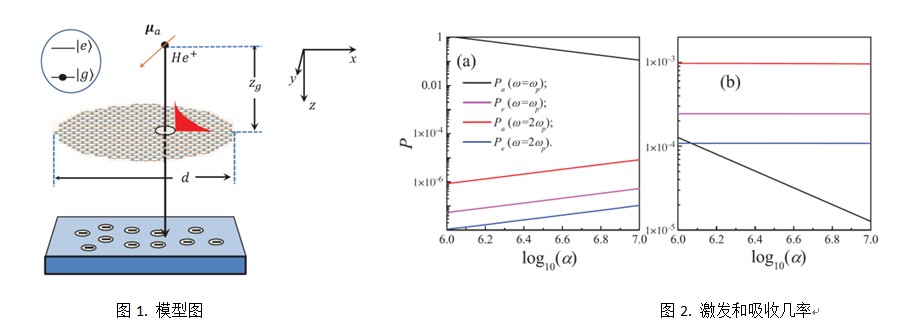 在新发表的论文中,作者利用石墨烯表面等离激元的特殊性质,包括极强的光局域性,在石墨烯两侧垂直电场方向相反等,使低速运动的基态二能级原子或离子经历很强的非绝热作用过程,成功实现很大几率的表面等离激元激发,得到很高的Unruh温度。文章同时详细讨论了激发能量的来源。为实验上观测Dynamic Casimir effect效应以及模拟Unruh效应提供一种实际方案。