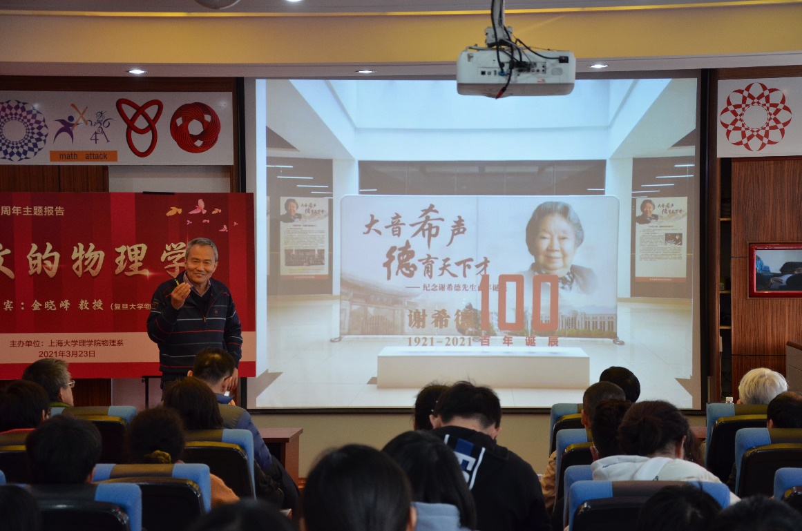 为深切缅怀我国著名物理学家谢希德先生为教育科学事业所做出的卓著贡献,2021年3月23日下午,365英国上市集团在校本部G507举办了“人文的物理-纪念谢希德先生诞辰一百周年”主题报告会,会议邀请了复旦大学物理系谢希德讲座教授金晓峰为365英国上市集团师生做报告。该报告为365英国上市集团“当代科学前沿讲坛”第261讲暨物理学科Seminar第537讲。报告会由物理系主任蔡传兵教授主持。365英国上市集团党委书记盛万成教授、365英国上市集团主持工作副院长张登松教授、物理系党总支书记颜明教授、物理系副主任任伟教授、张永平教授、葛先辉教授、张爱林教授等百余名师生参加了报告会。