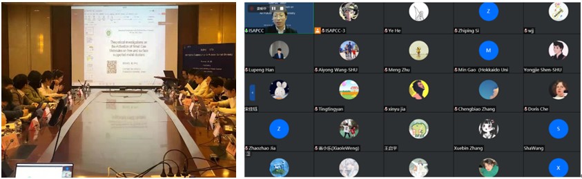会议于2021年11月18日上午开幕,张登松研究员主持并致欢迎辞。在会议邀请报告中,来自澳大利亚昆士兰大学的Wang Lianzhou教授、电子科技大学Dong Fan教授、华中科技大学Wang Jiangyu教授、上海师范大学Zhang Dieqing教授以及泰国国家科技发展署国家纳米技术中心的Bunyarat Rungtaweevoranit研究员分享了以光催化,光电催化以及电催化等手段实现温室气体转化,污染气体消除的最新研究成果;美国西北太平洋国家实验室的Gao Feng研究员、浙江大学Weng Xiaole教授以及清华大学Peng Yue副教授以及美国中佛罗里达大学Liu Fudong助理教授,报告了分子筛催化剂,金属氧化物催化剂在移动源及固定源尾气治理,含氯挥发性有机物治理方面的研究进展,并探讨了催化剂抗中毒的机制;北京大学Lu Keding教授、复旦大学Zhang Liwu教授以及中国科学院生态研究中心Chu Biwu研究员分享了气体污染物的生成机制以及污染气溶胶组分解析;日本北海道大学Gao Min助理教授、瑞典查尔姆斯理工大学Chen Lin博士以及Yao Dawei博士的报告从理论计算及有限元模拟层面出发,为小分子污染物的催化转化以及吸附提供了思路。与会师生在会议中针对大气污染的起源、污染的控制及污染协同治理等相关问题展开了热烈的探讨。