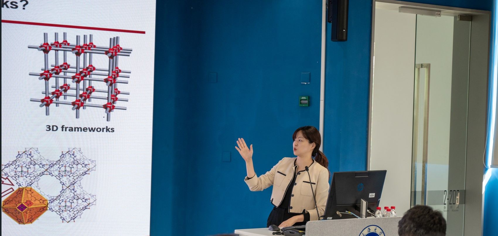 Sarah S. Park教授做了题为“Electrically Conductive Metal-Organic Framework Thin Films”的精彩报告,分享了她在导电金属有机框架 (MOFs)薄膜 方面的研究进展,并展示了其工作在高性能电子设备发展方面的前景,包括电催化剂和超级电容器。Park教授指出要充分发挥导电金属有机框架 (MOFs)薄膜的潜力,需要克服诸多挑战,特别是在控制 MOFs 的宏观形态以无缝集成到实际应用中。目前合成导电二维 MOF 薄膜主要有两种方法:一种是通过单步全气相化学气相沉积 (CVD) 工艺,另一种是通过可溶液加工的合成方法。其中,用 CVD 合成的大面积 Cu3(C6O6)2 薄膜具有高结晶度和取向的边缘。使用电子束光刻技术制造了基于 Cu3(C6O6)2 薄膜的微器件其导电率为 92.95 S/cm。Park教授的工作通过全气相 CVD 合成导电 MOFs 薄膜可以深入了解这些材料的物理特性,并为实际应用铺平道路。