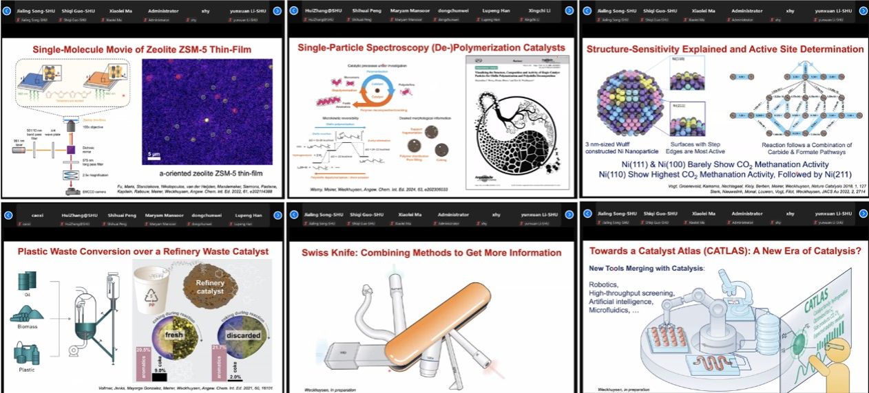 Weckhuysen教授主要从六个方面对这次讲座展开了详细的介绍,包括分享二氧化碳在镍基和钴基催化剂(热催化转化)以及铜基催化剂(电催化转化)上活化并转化为燃料和化学品的最新进展和废旧塑料的高值催化转化进展。贯穿其中的是利用“Operando Spectroscopy”技术,在微观尺度上进行催化成像,这为我们贡献了一场别具风格的分子、原子层面的“电影”。