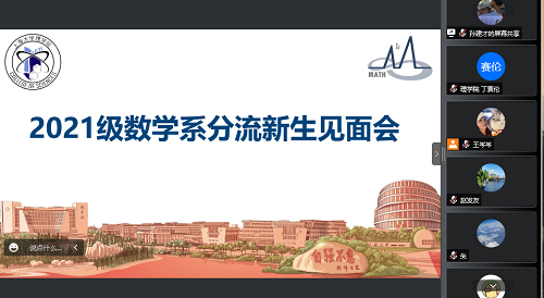 最后,21级数学各位班导师分别在线上做简要自我介绍并发表新生寄语,20级数学三位导生代表分享了自己在数学系就读的心得体会和学习经验。此次2021级数学系分流新生见面会圆满结束。