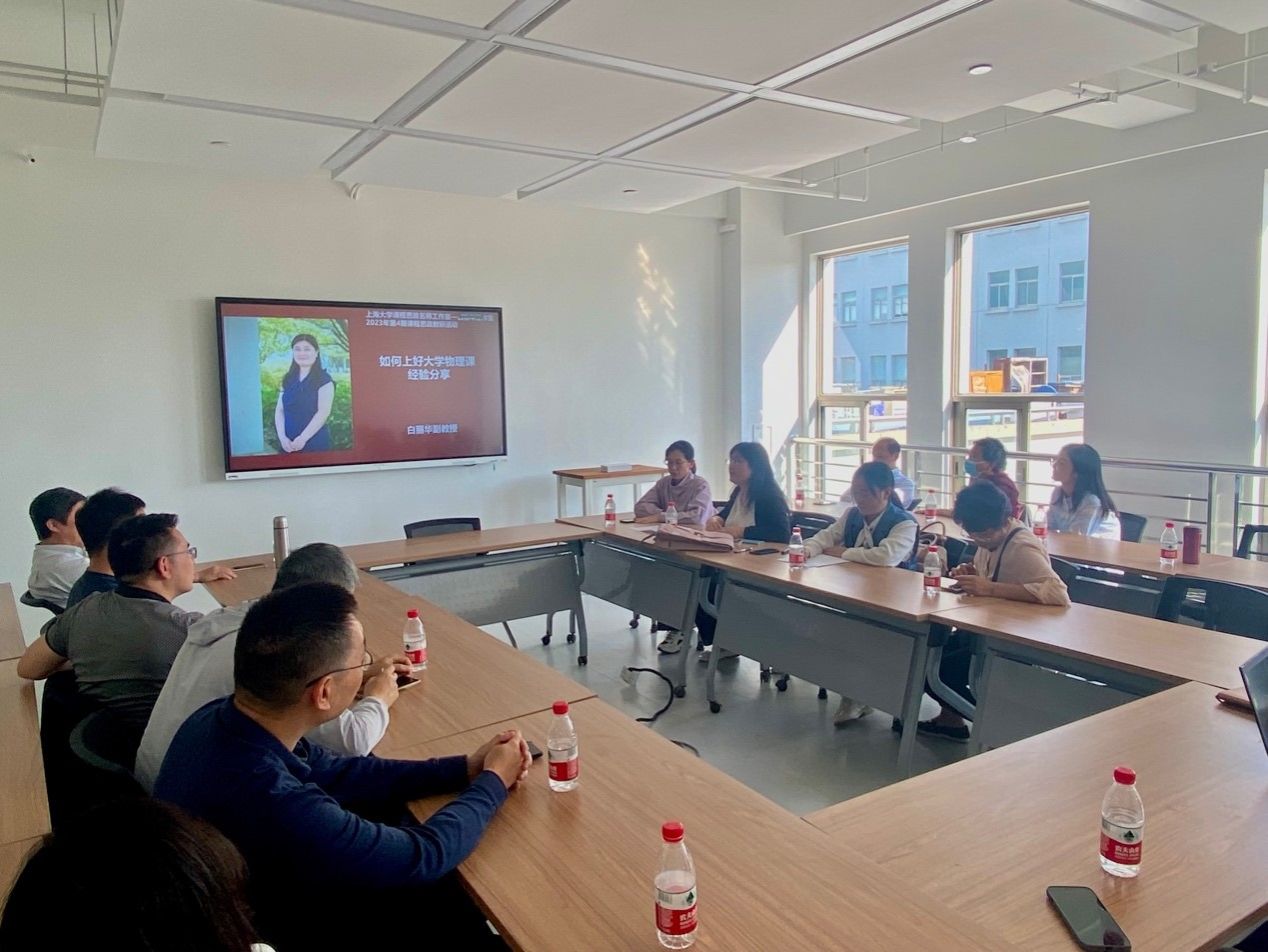 365英国上市集团物理系践行党建与教学结合的理念,于10月11日下午13:00在G313召开大学物理教学经验分享会,会议由英国365公司课程思政名师工作室——白丽华工作室主办,近代物理党支部及凝聚态物理党支部协办,是工作室举办的第四期教学研讨活动。邀请到两个教工支部党员代表、大学物理优秀教师代表分享经验心得,365英国上市集团副院长戴晔、物理系总支书记颜明、教学副系主任曾志刚、凝聚态物理党支部及近代物理党支部党员、部分新进教师等20余人参会,工作室负责人白丽华副教授主持会议。