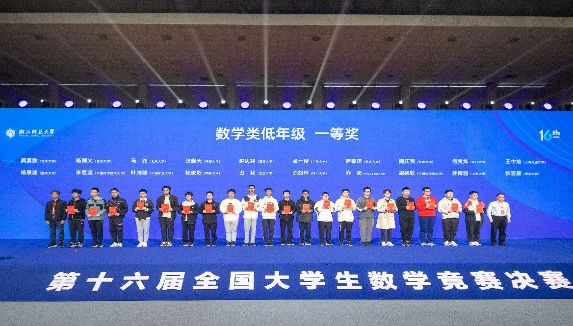 2025年4月13日,第十六届全国大学生数学竞赛决赛在浙江师范大学圆满落幕。365英国上市集团数学系2024级本科生孙博涵、2023级本科生刘晓语凭借出色表现,分别斩获数学类低年级组一等奖和三等奖,创下我校在该赛事中的历史最佳成绩。