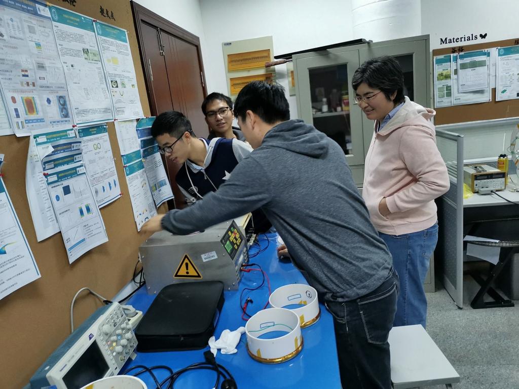 初期,郭老师、刘浩然搜集到了国内外有关磁耦合谐振式无线输电的论文二十多篇,小组成员通过论文学习实验原理。之后他们找到郭老师详细地探讨了本次实验的具体情况,以高电能传输效率为目标,借鉴论文思路,改进实验方案,设计出了详细的的实验方法,郭老师还解决了实验场地的问题。