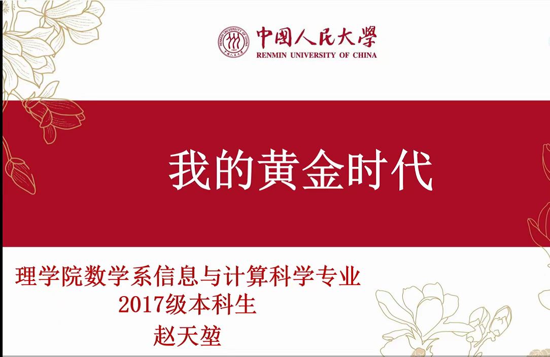 顾逸凡同学分享结束后,赵天堃学长通过“腾讯视频”与在场的各位同学进行了线上交流。在列举了一些考研的内外动机之后,赵天堃介绍了自己备考的时间线,并分享了许多重要的考研信息,并且在目标院校这一重要问题上,他就报考地区、报录比、专业前景与未来发展等方面进行了全面的分析与比较。最后,赵天堃同学回顾自己近一年的备考经历,建议大家早做准备,多方了解信息,掌握主动权。他鼓励同学们勇往直前,不负韶华,以梦为马,砥砺前行。