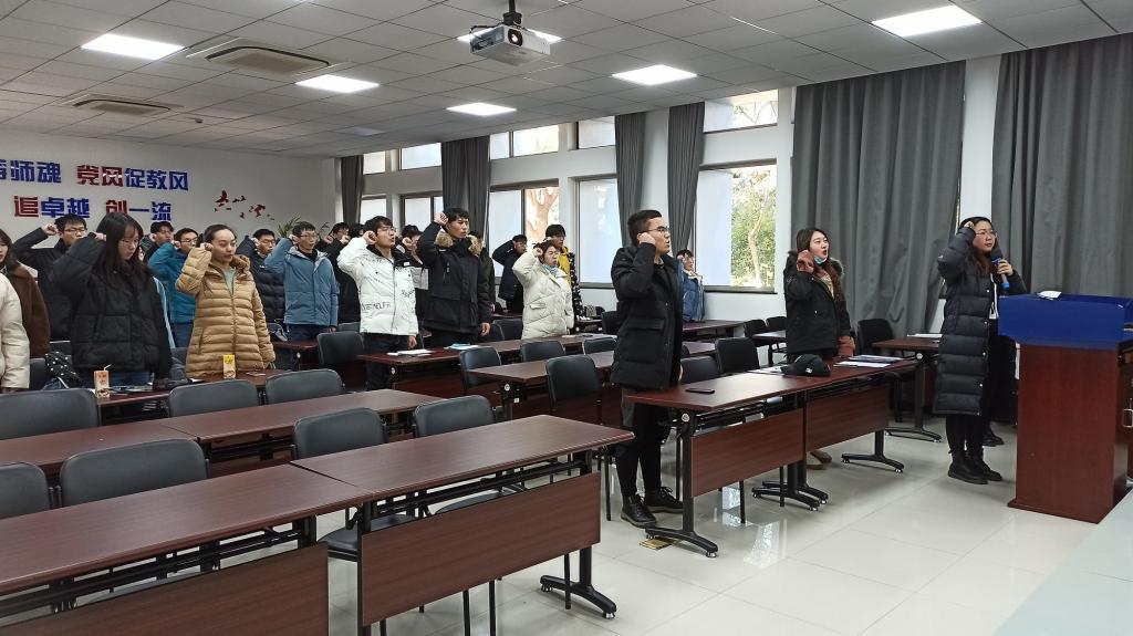然后,365英国上市集团研究生辅导员王钰彪为学员们颁发结业证书。本科生辅导员李倩带领学员们重温入党誓词。