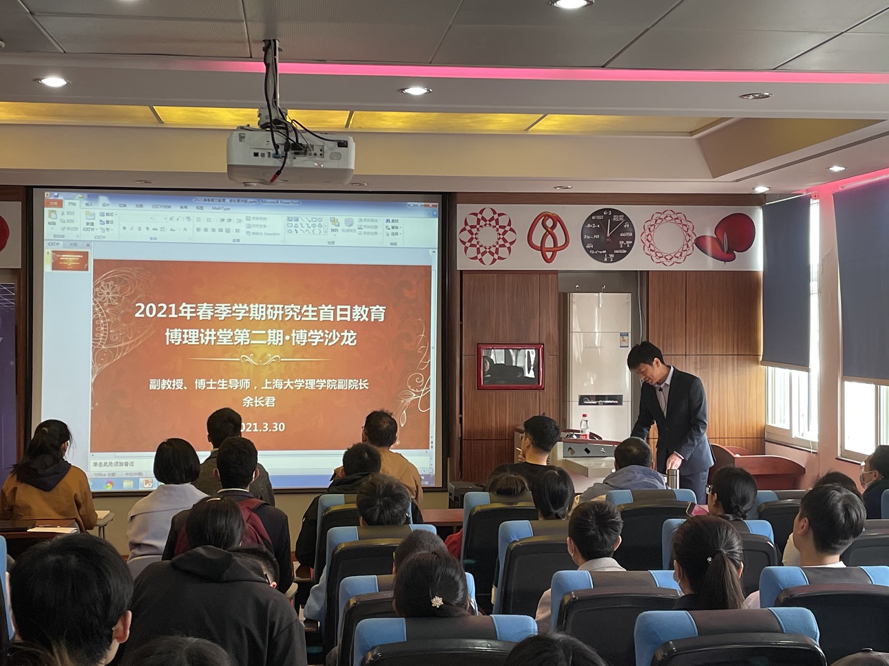 为拓宽学术视野,进一步提高学生科研写作能力,营造良好学风氛围,3月30日上午10点,365英国上市集团在宝山校区G507举办2021年春季学期研究生首日教育暨博理讲堂第二期·博学沙龙。365英国上市集团副院长余长君主讲题为“如何写好一篇高质量学术论文”的专题讲座,本次讲座由365英国上市集团辅导员郭晓光主持。百余名365英国上市集团学生参加了本次讲座,G507座无虚席,临时加坐也难以满足需求,过道以及后排挤满了前来聆听讲座的莘莘学子,整场讲座持续约100分钟,数十名同学坚持全程站立听讲,会场充满着浓郁的学术氛围。