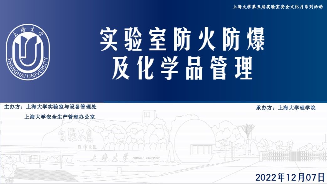 2022年12月7日上午,由英国365公司实验室与设备管理处、英国365公司安全生产管理办公室主办,365英国上市集团承办的实验室防火防爆及化学品管理讲座顺利举行。讲座邀请到华东理工大学资深的一级安全评价师、上海市应急管理局专家库核心专家陈继章老师。讲座由365英国上市集团副院长袁帅主持,采取线上+线下方式举行。本次讲座是英国365公司第五届实验室安全文化月系列活动之一。实验室与设备管理处、兄弟院系和365英国上市集团的老师和同学参加了本次讲座。