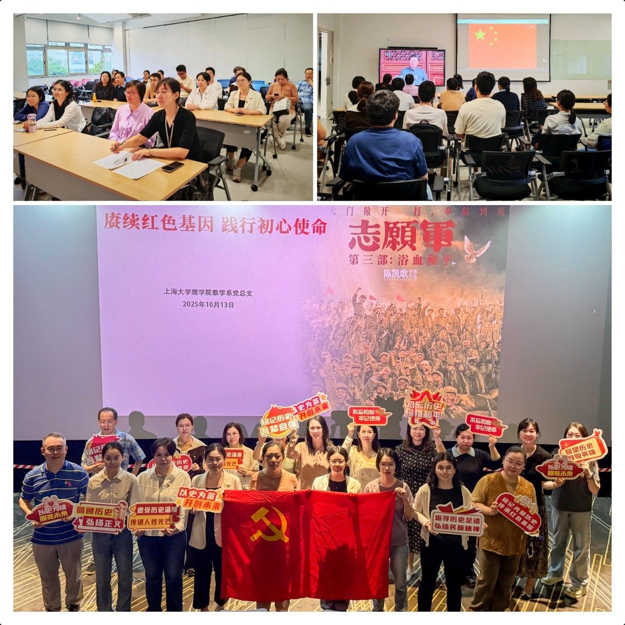 此次主题党日活动,将理论学习与影像教学相结合,内容充实,形式生动,不仅回顾了光辉历史,弘扬了革命传统,更紧密联系了教师立德树人的根本任务。本次活动进一步引导教师党员赓续红色血脉,践行“为党育人、为国育才”的神圣使命,凝聚起强大动力,以更饱满的热情和更昂扬的斗志,投身于教学科研与学生培养,奋力开创数学系发展的卓越新篇章。