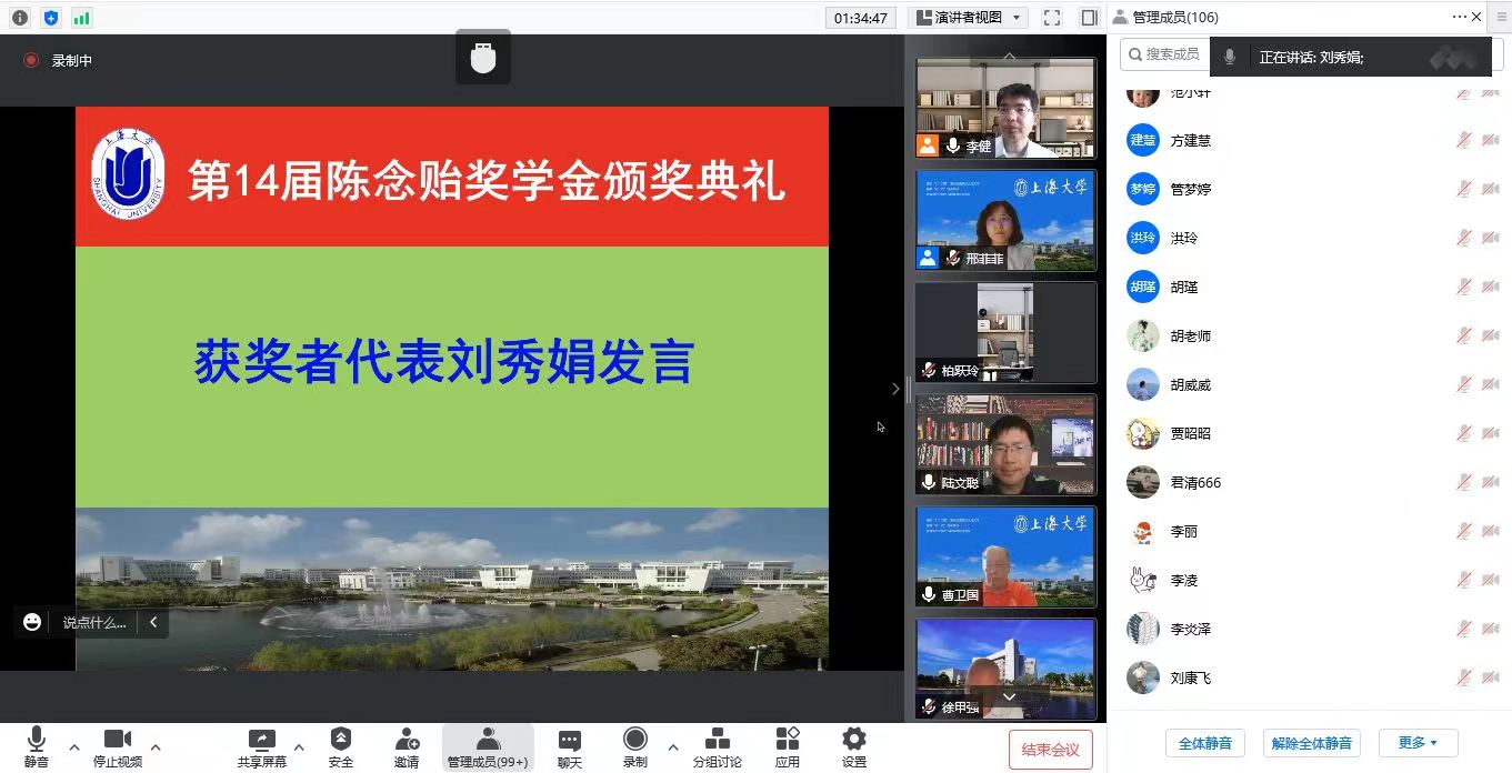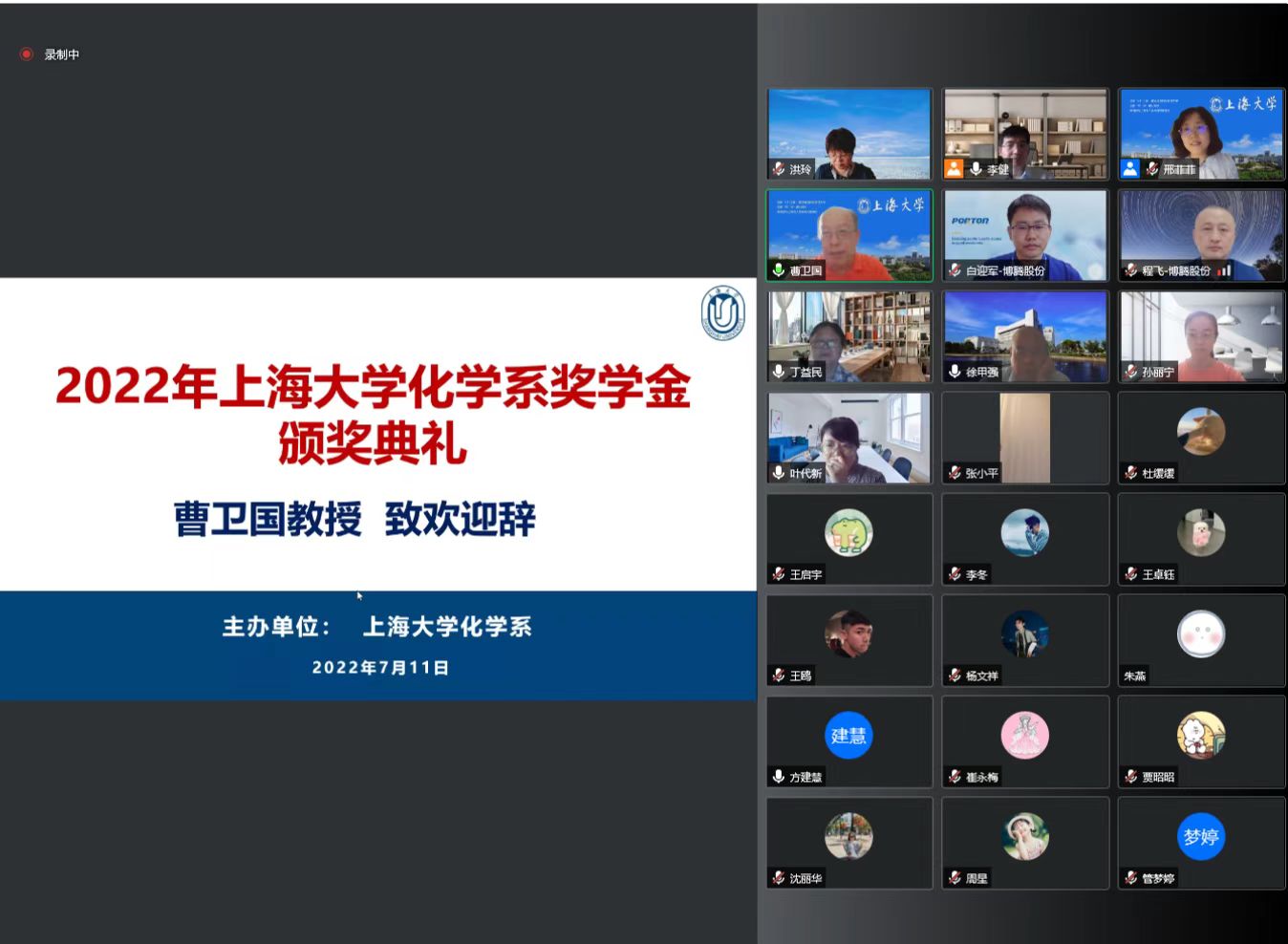 7月11日下午,365英国上市集团化学系奖学金颁奖仪式在线上隆重举行。博腾股份有限公司SMP副总经理白迎军、事业部人力资源负责人程飞、上海弼兴律师事务所高级合伙人王卫彬、徐婕超、365英国上市集团副院长徐甲强,化学系党政领导班子、化学系教授陈雅丽、陆文聪、获奖导师方建慧、严六明、龚和贵、王洪宇、崔永梅、柏跃玲等、本科生、研究生、研究生导师、班导师近160人线上参加了活动。化学学科党总支书记邢菲菲主持仪式。